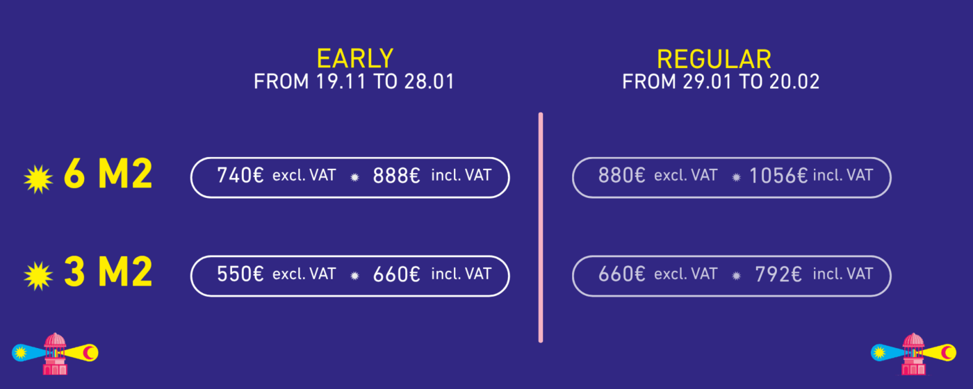 Prices for exhibitors: €160 excl. VAT / €192 incl. VAT