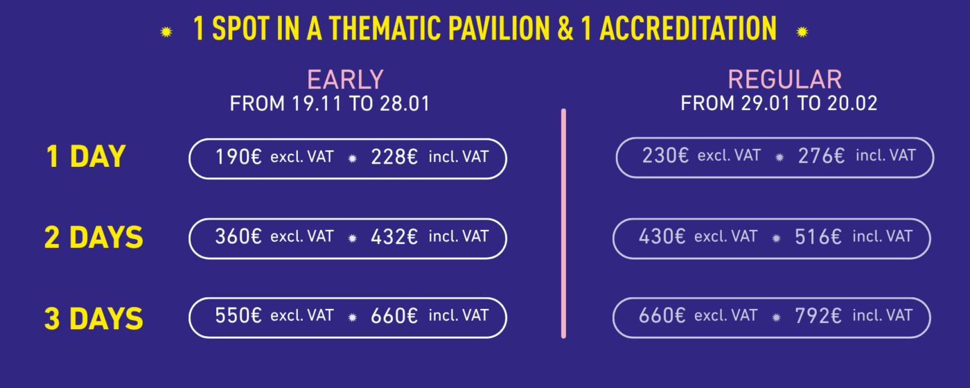 Price for a spot (1 table): €125 excl. VAT / €150 incl. VAT